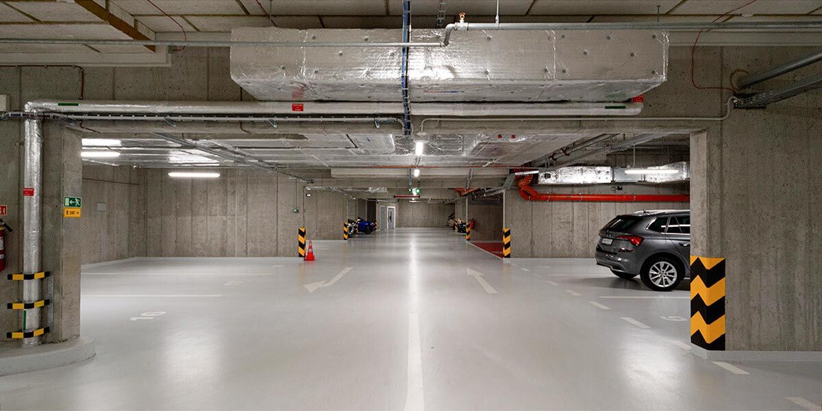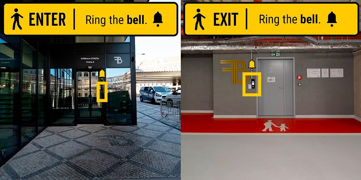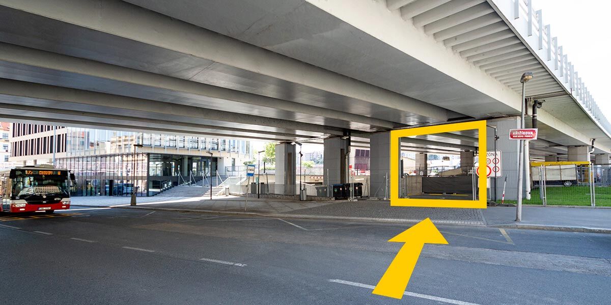 Pro odchod z garáže použijte označené dveře a osobní výtah. Pro vyzvednutí vozu použijte hlavní vchod do budovy a výtahem sjeďte do garáže.