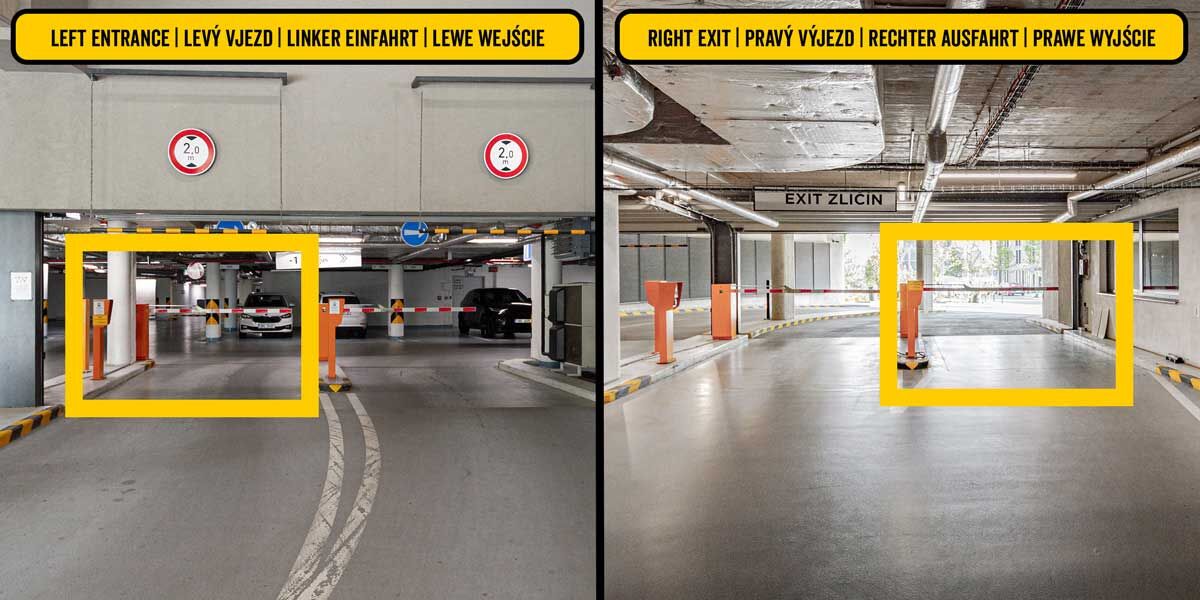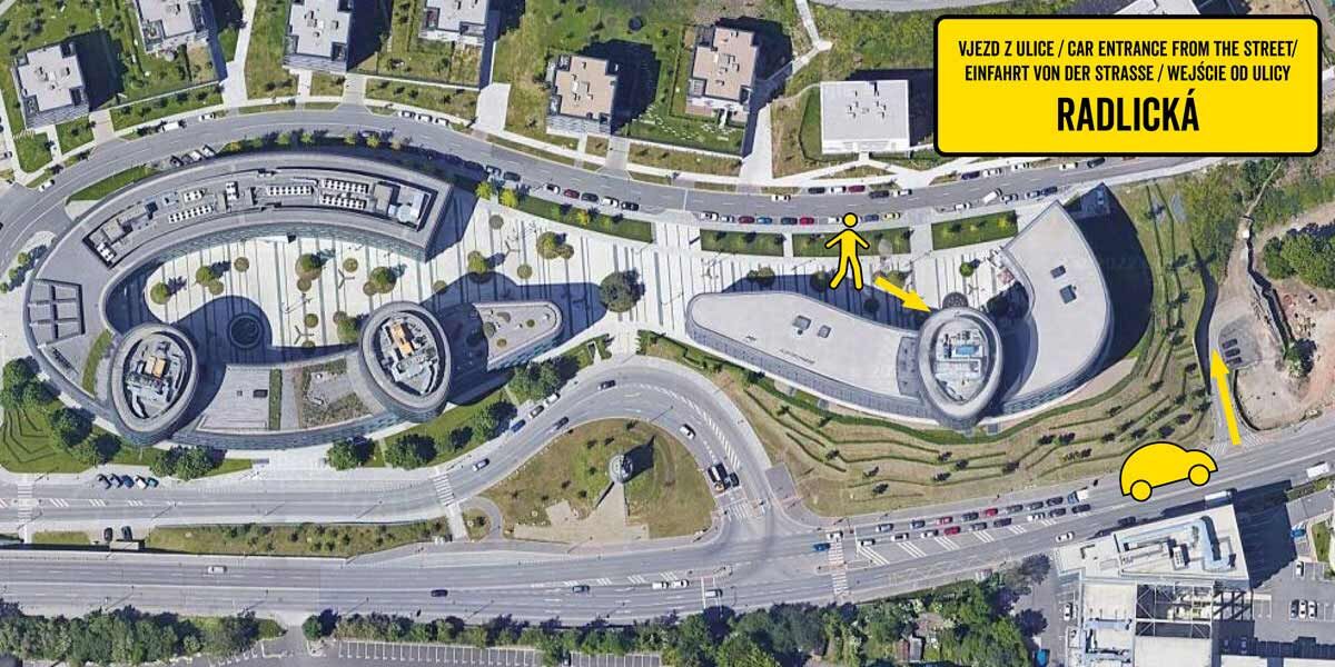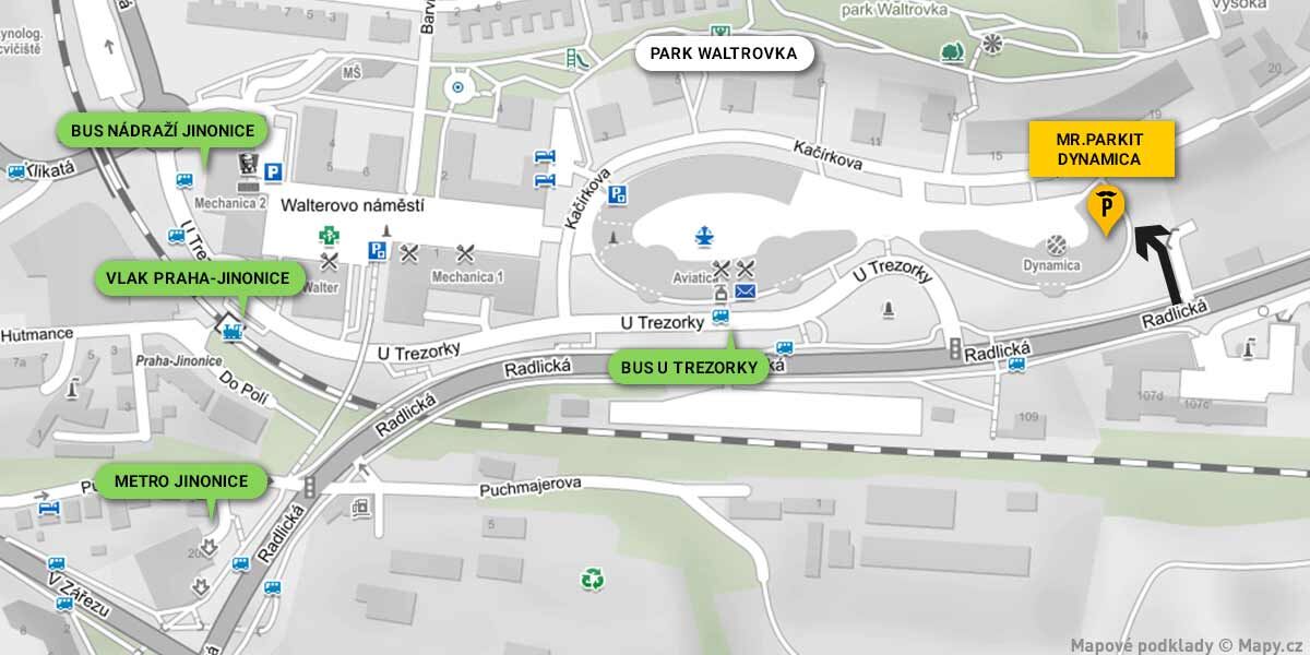 Klienti MR.PARKIT využívají vjezd/výjezd do garáže pouze z ulice Radlická / Vladimíra Kobranova. Vjezd z ulice Kačírkova není možný.